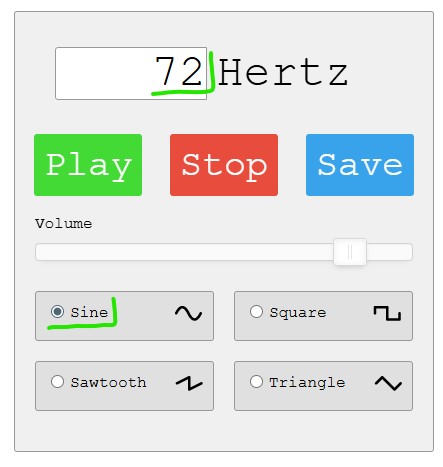 Online Tone Generator spielt 72Hz und andere Frequenzen (kostenfrei): https://onlinetonegenerator.com?freq=72